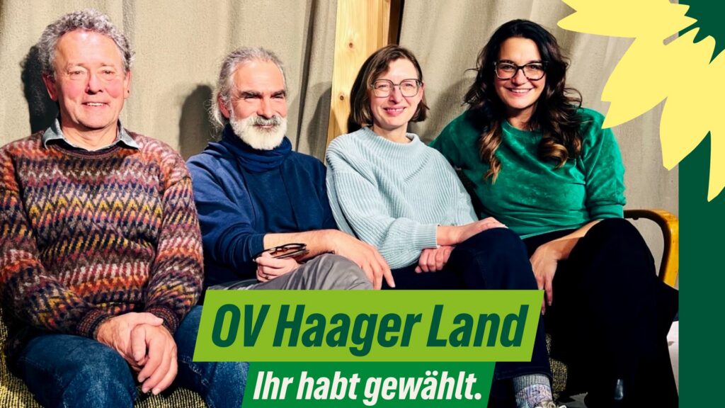 Kreistag: Im Kreistag wird der OV Haager Land von Alfons Linner vertreten, der für die kommende Kreistagswahl unsere Liste auf Platz zwei mit anführt. Viele weitere Mitglieder des OV Haager Landes unterstützen die grüne Kreistagsliste ebenfalls (ff.)